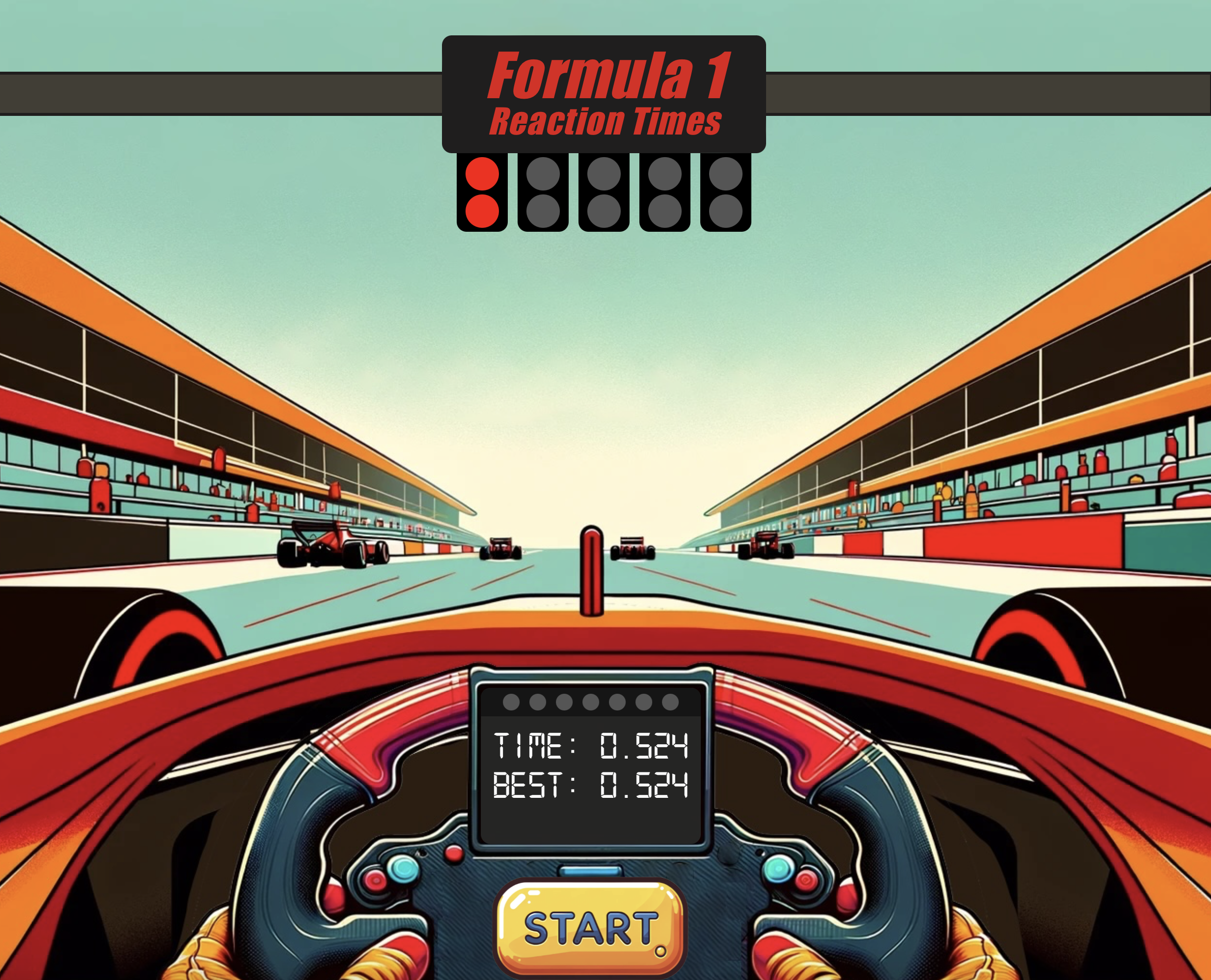 Vibrant web application designed for benchmarking reaction times through a simulated Formula One grid light system. Developed using HTML, CSS, and JavaScript, it features precise reaction time analytics, a responsive design, and a system for tracking personal bests. This project exemplifies modern web application development, balancing functionality with an engaging user interface.